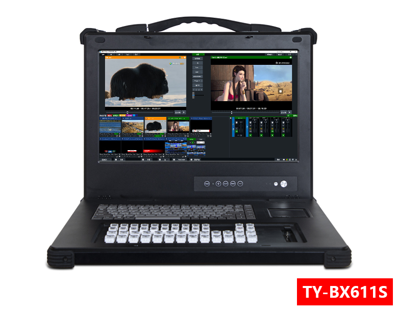 天影視通直播錄播一體機(簡稱:一體機)融合傳統演播室中多種設備功能,它是融合傳統演播室中多種設備功能,實現信號采集、虛擬演播、圖文字幕包裝、信號切換、外置設備控制、動畫轉場、網絡直播、拉流、錄像機、調音臺、大屏輸出、多方連麥、臺歷輸出、多通道錄制、慢動作回放、剪輯合成、視音頻播出等功能,滿足用戶節目制作需求。