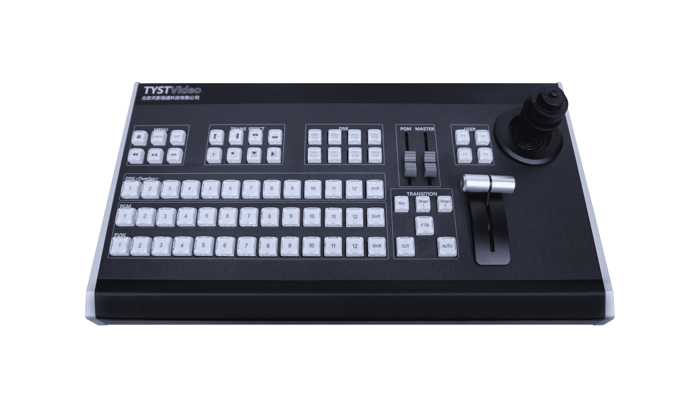 全新的TY1500Pro切換臺(tái)面板是專為直播系統(tǒng)和全媒體4K虛擬演播室系統(tǒng)設(shè)計(jì)的外置導(dǎo)播切換臺(tái),擁有優(yōu)雅設(shè)計(jì),是一臺(tái)專為實(shí)現(xiàn)導(dǎo)播切換臺(tái)、直播、錄制和云臺(tái)控制為一體機(jī)的專業(yè)級(jí)硬件控制面板。它具備十足的現(xiàn)代感外觀和MIDI通訊協(xié)議接口,能大幅加快直播回放的工作流程。面板采用曲線型按鈕,能夠降低誤操作的幾率。按鈕均采用背光設(shè)計(jì),幫助您快速識(shí)別重要鍵控。此外,他還配備快速搜索盤和T型推桿等。按鈕支持動(dòng)態(tài)顯示,所有按鍵支持自定義設(shè)置。