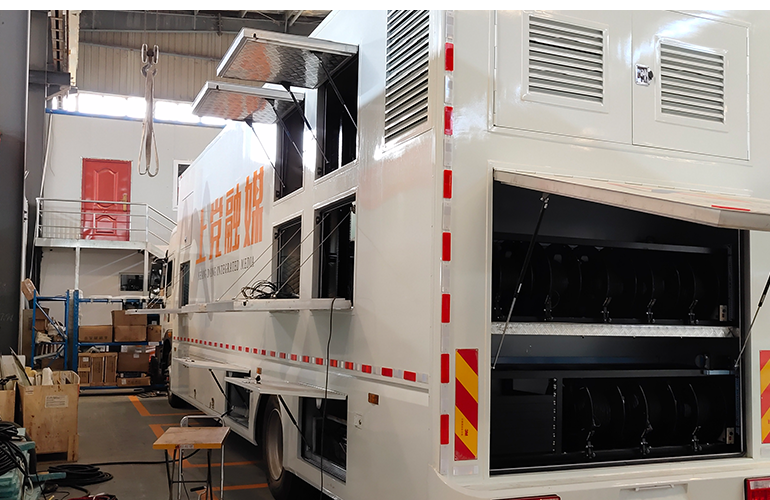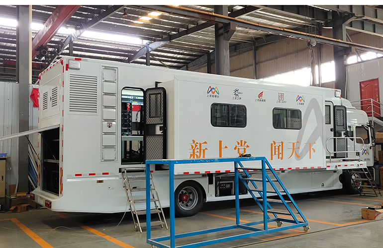 上黨全媒體4K直播車采用東風汽車牽引頭,車體+車頭總廠超過14米,該車交付使用后,將覆蓋上黨全媒體中心統籌整合縣委機關刊物《今日黎都》、長治縣電視臺、長治縣廣播電臺、長治縣新聞網、上黨門手機客戶端、上黨全媒體微信公眾號、直播上黨等資源,再造新聞采編播發新模式,初步形成了“一次采訪 分類制作 多屏分發 定向推送”的宣傳新格局。