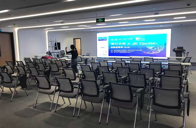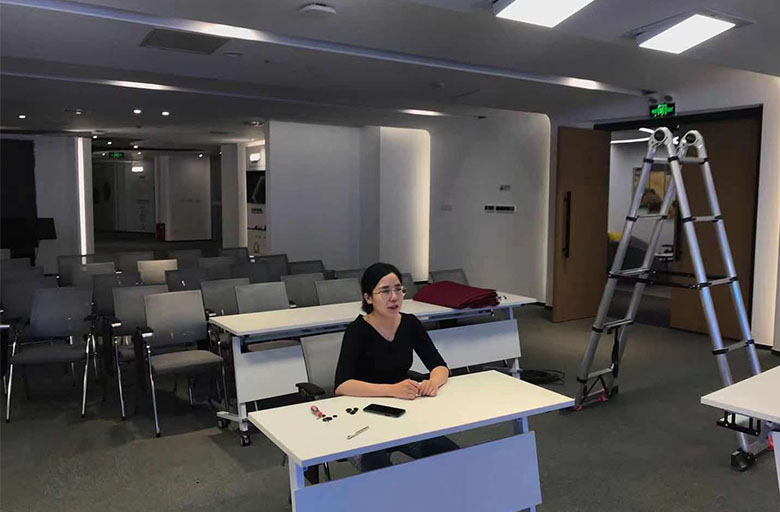 北京京晉科技有限公司位于北京市海淀區,主要從事技術開發、技術轉讓及技術推廣等,公司展廳有一個演講臺,起初裝修的時候沒有考慮到拍攝問題,裝修完成使用時發現拍出的照片人臉發黑,觀感很差。