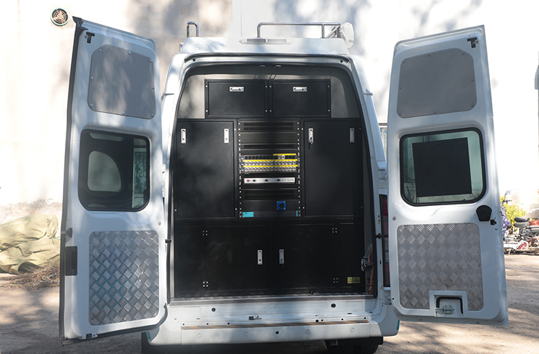 該直播車車體改裝包括車體改裝、車輛外飾、內飾裝修、導播工作臺、監視墻、空調系統、照明系統、電源系統等,集車載平臺系統、視音頻播出系統、發布傳輸系統、視頻監控等于一體,相當于一座移動的“全媒體直播航母”,可接入航拍器、無線攝像機、車頂攝像機等信號,在電視、廣播、電腦、手機移動端發布,覆蓋全終端全平臺。